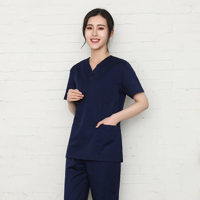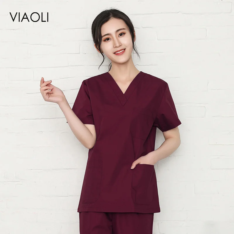 Solid color Cotton Medical Scrubs Surgery Nurse Uniform For Women Medical Clothing Shirt Beauty Sal